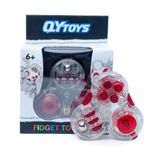 Pequeño mando diseñado para liberar el estres y relajar los músculos de los dedos, para lo cual cuenta con pequeñas actividades repartidas alrededor de su forma ergonómica.